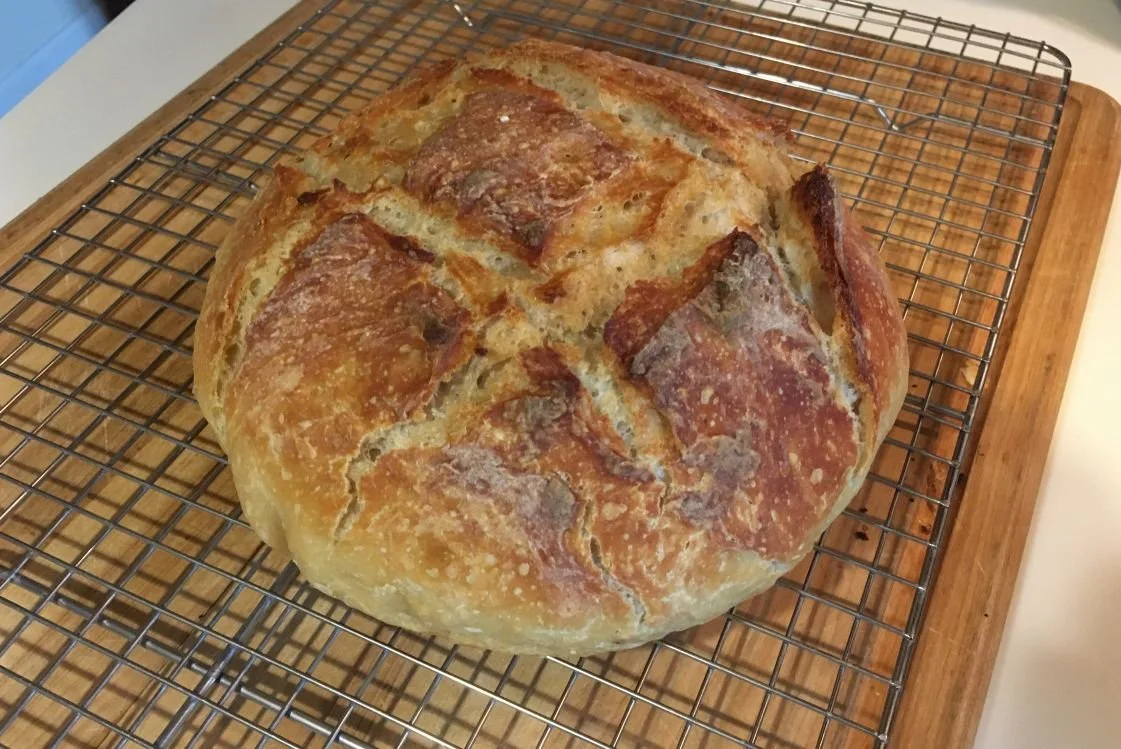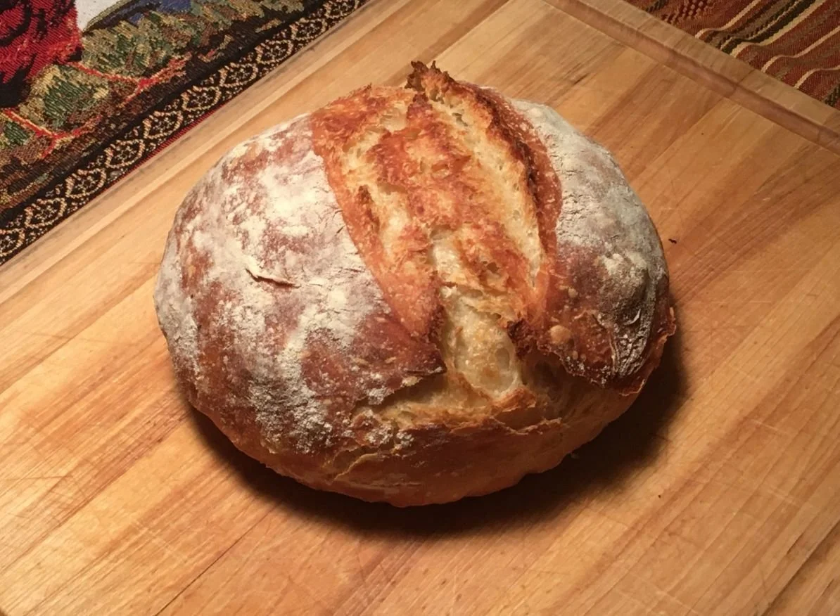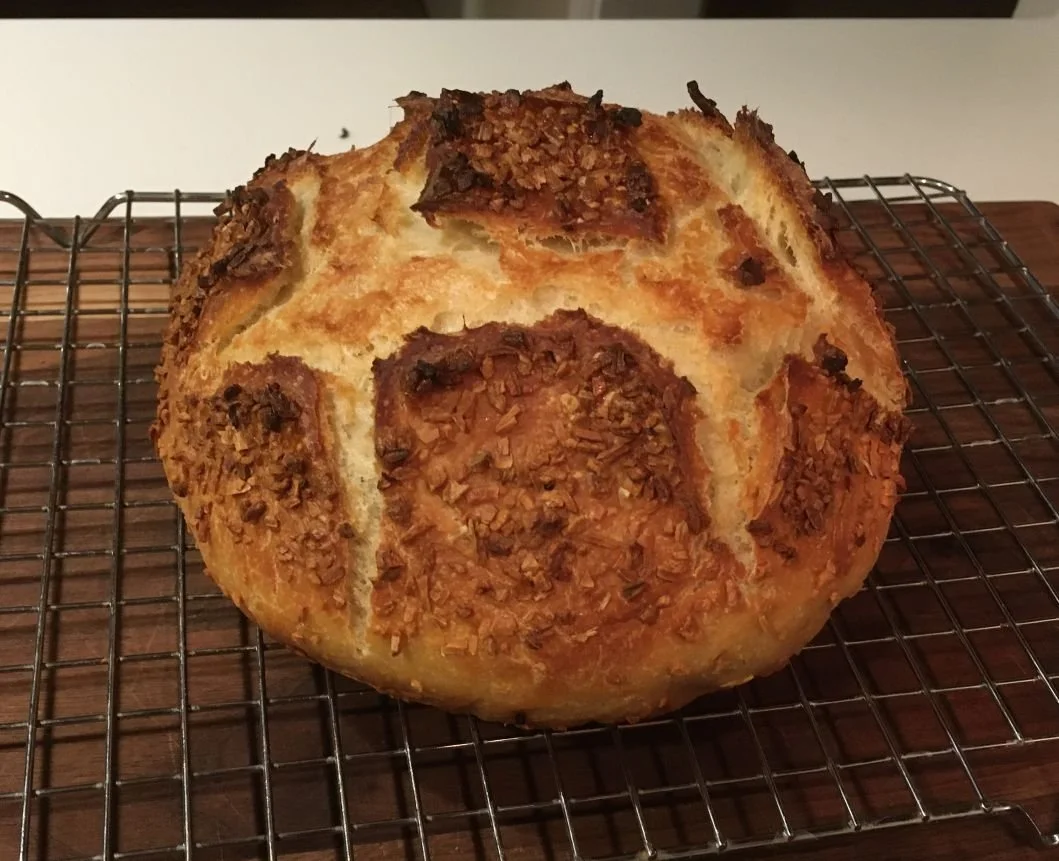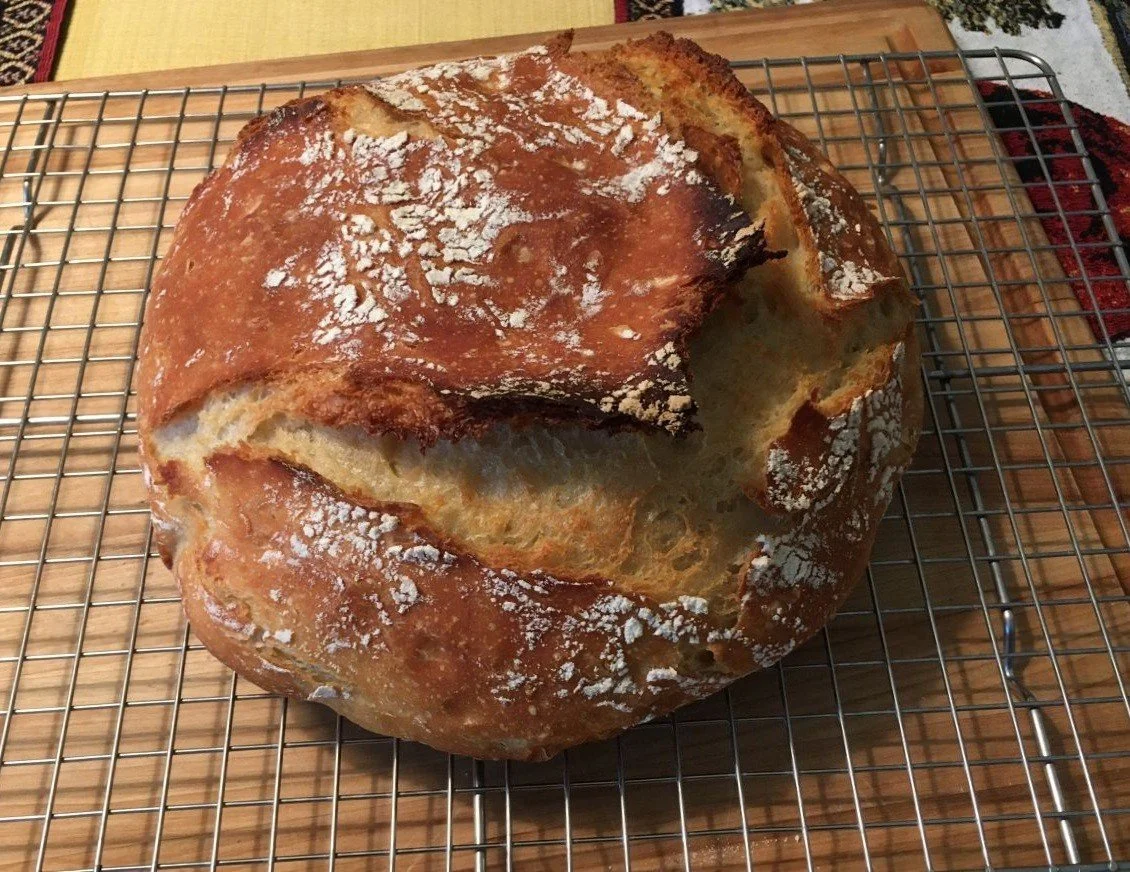If you find your bread browns too much on the bottom, place aluminum foil or an aluminum tray cover on the rack below your cast iron pot to shield it.