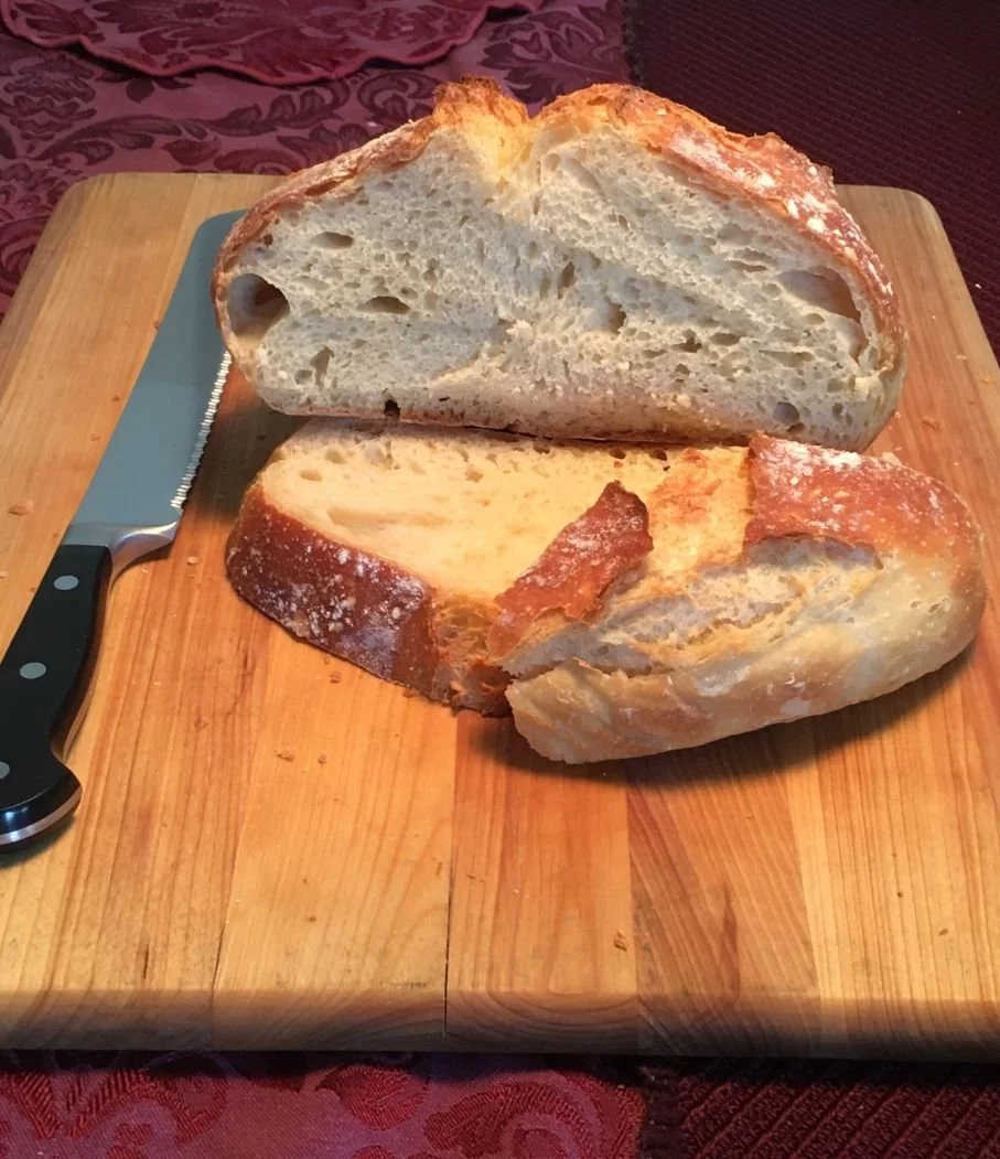 The recipe has an overnight version that is most like Lahey’s and a faster 4-5-hour version, which I used for these breads. The recipe is near fool-proof. I suppose that’s why I like it. It’s easy, consistent, and open to variation. Bake at night, eat in the morning.